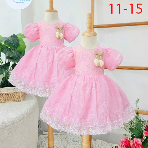 A512212- Đầm may tùng xòe vải thêu ren 5d vải nhập sang trọng đính hoa tulip 2 lớp tay phồng 1 lớp r