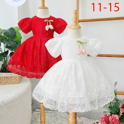 A512214- Đầm may tùng xòe vải thêu ren 5d vải nhập sang trọng đính hoa tulip 2 lớp tay phồng 1 lớp r