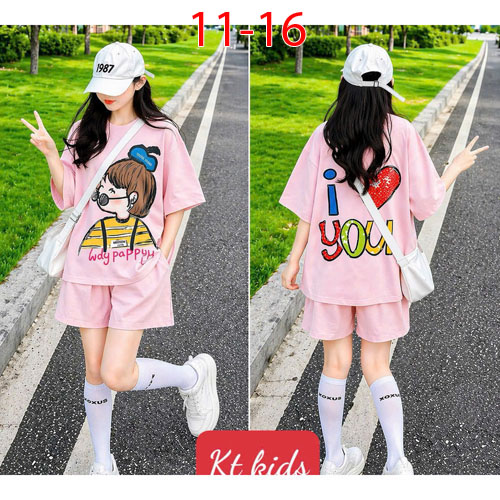 A512228 - Bộ thun đùi sành điệu cho bé gái in tổng hợp_Size 11-16