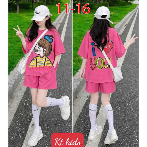 A512233 - Bộ thun đùi sành điệu cho bé gái in tổng hợp_Size 11-16