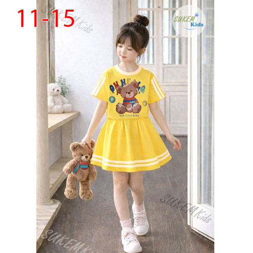 A504433 - Set váy cute với thiết kế chân váy xếp ly chạy dây viền thể thao ép hình gấu siêu hot_Size